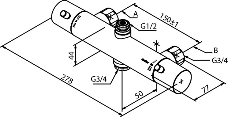 Damixa Thermixa 100 brusetermostat (½" afgang op - 3/4" afgang ned)