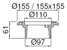 Ducolet firkantet karme Specifikationer: Diameter:110 mm Belastning:1,5 Materiale:Gråjern