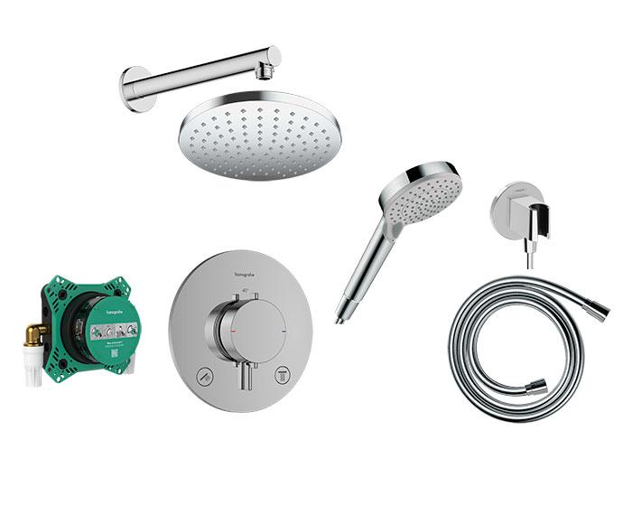 hansgrohe Ecostat Comfort S 200 komplet brusesæt t/indbygning - Krom Dette komplette brusesystem til indbygning inkluderer: