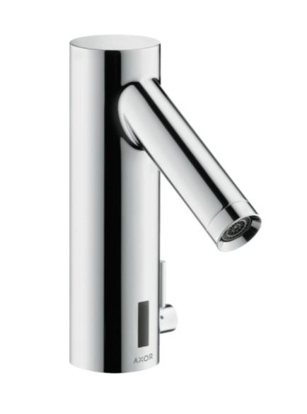 Hansgrohe Elektronik håndvaskarmatur 220V - HG nr. 10140000. Til 220V strømning. Med temperturregulering. Inkl. skoldningssikring. Max 42 grader varmt vand.