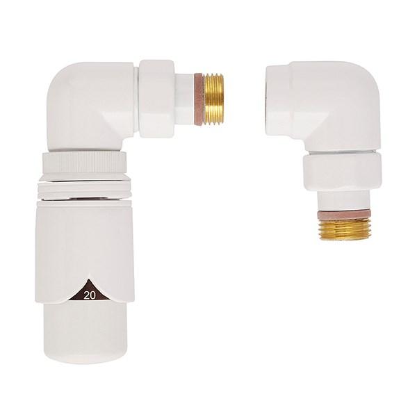 Strømberg Retur-termostat ventilsæt hjørne venstre - Hvid Strømberg Retur-termostat ventilsæt, hjørne, venstre, ½ " muffe Føler på vandtemperaturen og giver derfor den bedste styring.