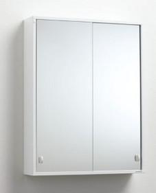 Svedbergs I:ET spejlskab 55 - Metal I:et spejlskab i metal med skydelåger i spejlglas og dobbelte håndtag. Det rummelige spejlskab har rigelig højde og tre flytbare hylder i lakeret metalplade. Spejlskabet er fremstillet i metalplade af en zink-jernlegering, som giver god bestandighed mod korrosion og rust. I:et er pulverlakeret for god ridsebestandighed.
